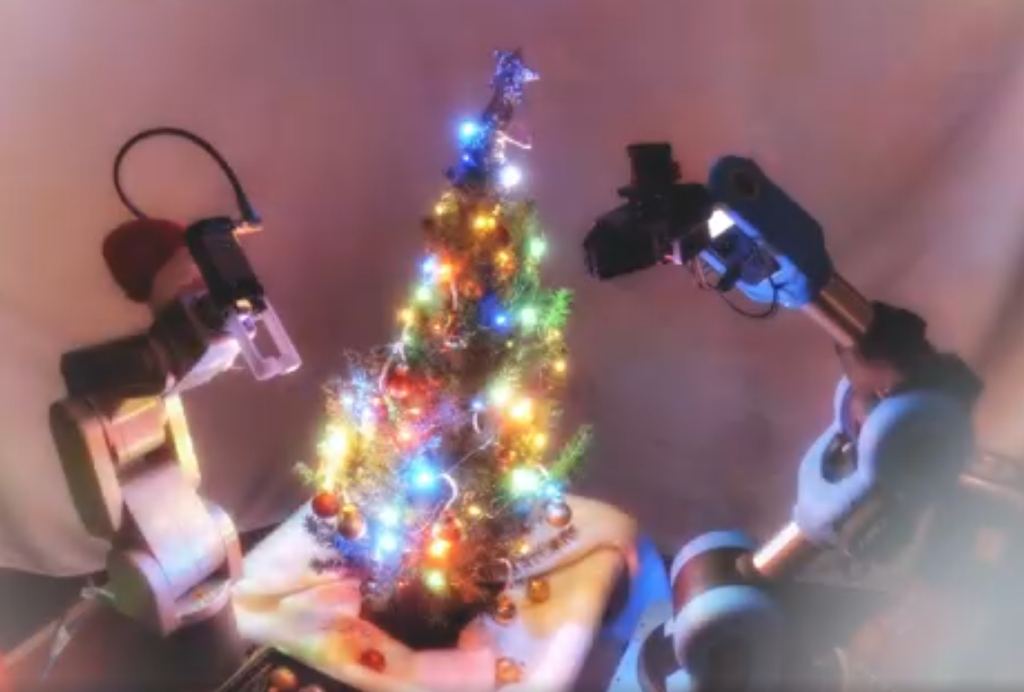 In this short video, Meca500 trims the tree as Ned (mostly) looks on.